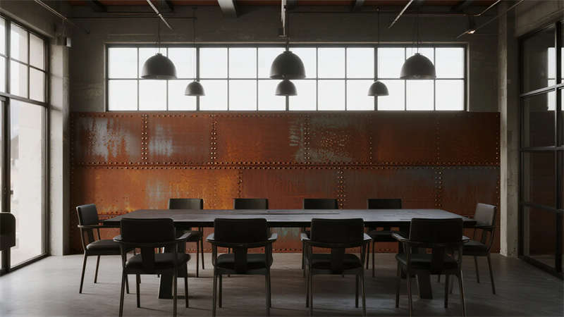 這組工業(yè)風辦公室設(shè)計以裸露結(jié)構(gòu)和復古質(zhì)感為核心,通過混凝土、金屬和木質(zhì)材料的碰撞,打造出兼具實用性與藝術(shù)感的辦公空間??臻g保留了建筑的原始肌理,如天花板的管線和墻面的磚紋,搭配黑色鐵藝家具和深色調(diào)軟裝,營造出冷峻而富有張力的氛圍。局部通過皮質(zhì)沙發(fā)、綠植和暖光燈具軟化工業(yè)風的硬朗感,增添人文氣息。