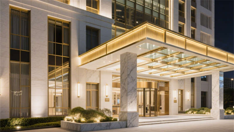 本設(shè)計以輕奢風(fēng)格為核心,通過柔和的基底色調(diào)與精致的細節(jié)搭配,構(gòu)建出兼具質(zhì)感與舒適度的酒店環(huán)境??臻g以米白色與淺灰色為基礎(chǔ),巧妙融入金色金屬線條作為點綴,既避免了過度奢華的厚重感,又增添了空間的精致度。墻面與地面選用細膩的大理石紋理材質(zhì),在光線映襯下呈現(xiàn)出自然的光澤,提升整體空間的高級感。家具選型注重線條的簡約流暢,搭配柔軟的布藝軟裝,營造出溫馨舒適的居住氛圍。各個區(qū)域在設(shè)計上保持風(fēng)格統(tǒng)一,從公共空間到客房區(qū)域,都延續(xù)了輕奢的設(shè)計語言,讓整體空間既富有格調(diào),又能給人帶來放松愜意的居住體驗。