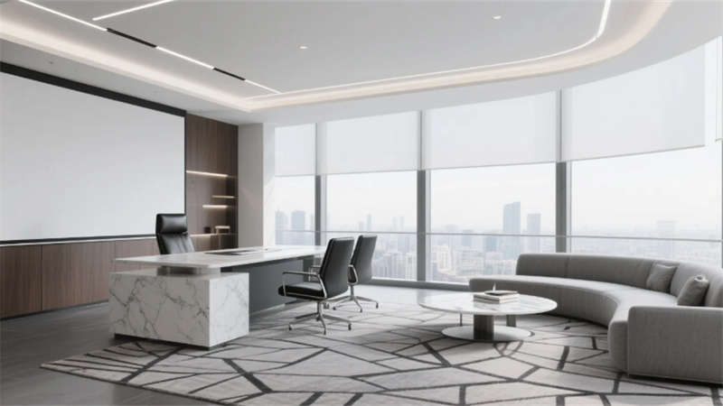 全案貫穿啞光金屬、木飾面與大理石材質(zhì)細(xì)節(jié),4000K中性光統(tǒng)一色溫,智能燈光系統(tǒng)提升能效。設(shè)計通過嚴(yán)謹(jǐn)?shù)木€條分割與人性化功能分區(qū),實現(xiàn)美學(xué)與實用性的深度融合,重新定義現(xiàn)代辦公空間的品質(zhì)標(biāo)準(zhǔn)。