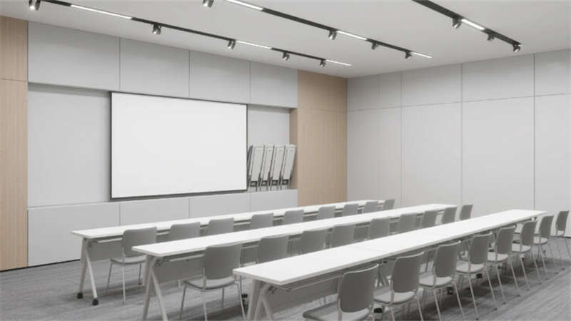 高管辦公空間彰顯差異化設(shè)計:經(jīng)理辦公室以木格柵墻面與模塊沙發(fā)營造親和力,總裁辦公室則通過深胡桃木隱形門、弧形沙發(fā)與城市景觀落地窗凸顯沉穩(wěn)氣度。多功能廳采用可伸縮隔斷與嵌入式LED屏,適應(yīng)培訓(xùn)、會議等多場景需求;茶水間以中島吧臺與幾何層板打造輕松社交空間,筒燈聚焦的綠植墻增添生機。