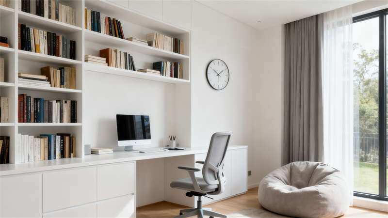 室內(nèi)空間延續(xù)整體風(fēng)格,客廳注重通透感,大面積采光讓空間更顯開闊,簡約款式的家具搭配棉麻質(zhì)感的軟裝,營造出溫馨放松的休憩氛圍;餐廳將實用性與美學(xué)結(jié)合,簡約餐桌椅搭配暖光吊燈,讓用餐時光更具儀式感;臥室以柔和色調(diào)為主,舒適床品與隱藏式收納設(shè)計,既保證了居住的舒適度,又維持了空間的整潔簡約;廚房采用簡潔的櫥柜設(shè)計,合理規(guī)劃動線,讓操作更便捷;衛(wèi)生間注重干濕分離,選用耐磨易清潔的材質(zhì),搭配簡約衛(wèi)浴潔具,保持空間清爽;書房/休閑區(qū)則以簡約書架與舒適座椅為主,營造出安靜專注的閱讀或工作環(huán)境,整體設(shè)計處處體現(xiàn)現(xiàn)代簡約的核心,為住客帶來愜意的居住體驗。