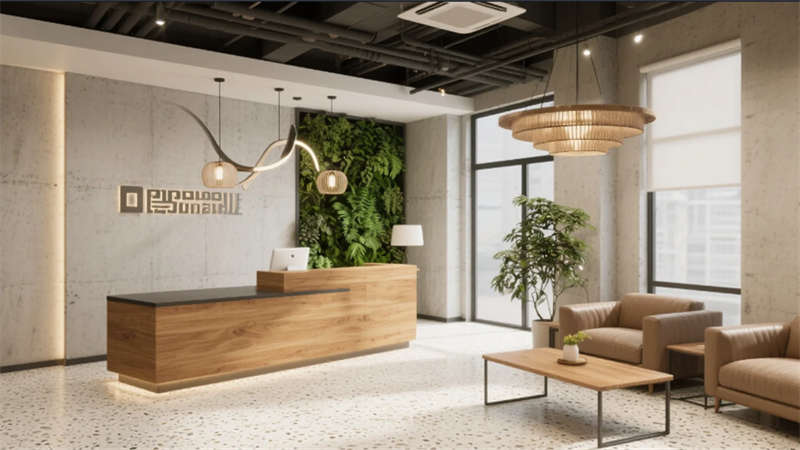 設(shè)計從本土氣質(zhì)中汲取靈感:圖書角的階梯書屋如皖北梯田般層疊上升,生態(tài)休閑區(qū)的苔蘚墻面呼應(yīng)淮北平原的綠意,竹木色調(diào)貫穿始終,在工業(yè)框架中注入自然呼吸感。創(chuàng)意沙龍區(qū)采用可重組家具,鼓勵思維碰撞;而半透明的會議室隔斷則隱喻開放溝通的企業(yè)精神。