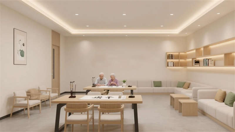 這套老年康養(yǎng)中心設(shè)計以現(xiàn)代簡約風(fēng)格為核心,營造一個溫馨、安全且充滿活力的生活空間。設(shè)計強調(diào)自然光與柔和色彩的融合,入口大廳以開闊布局和藝術(shù)元素傳遞家的溫暖,休息區(qū)則通過舒適沙發(fā)和綠植打造社交港灣。餐廳和活動室注重功能性,淺色調(diào)家具與靈活布局鼓勵日?;?,促進社區(qū)歸屬感。居住單元采用圓角細節(jié)和私密氛圍,確保舒適休憩??祻?fù)訓(xùn)練區(qū)融入防滑設(shè)計和自然光,支持健康活動。戶外庭院成為心靈綠洲,石板步道與花壇提供寧靜放松。多功能廳則適應(yīng)多樣需求,增強空間活力。整體設(shè)計以適老化理念貫穿,避免繁雜裝飾,突出簡約美學(xué)與人性關(guān)懷,讓每位長者感受到尊重與陪伴,在簡約中體驗生活的美好。