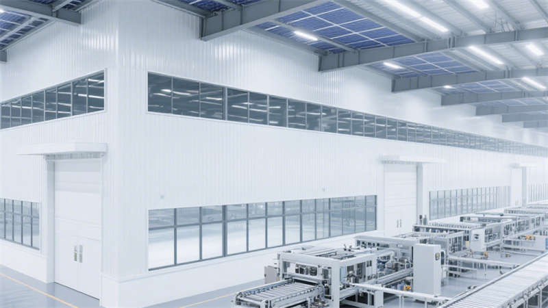 各區(qū)域在材質(zhì)選擇上注重實(shí)用性與質(zhì)感,搭配統(tǒng)一的設(shè)計(jì)語言,既展現(xiàn)出新能源產(chǎn)業(yè)的科技感,又讓整個(gè)廠房內(nèi)部顯得和諧統(tǒng)一,滿足生產(chǎn)、倉儲與研發(fā)等多方面的功能需求。