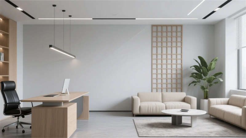 本辦公樓設(shè)計以“簡約、高效、自然”為核心理念,采用淺灰、白色與木色為主色調(diào),搭配啞光金屬與線性燈光,構(gòu)建出兼具專業(yè)度與人文關(guān)懷的現(xiàn)代化辦公環(huán)境。