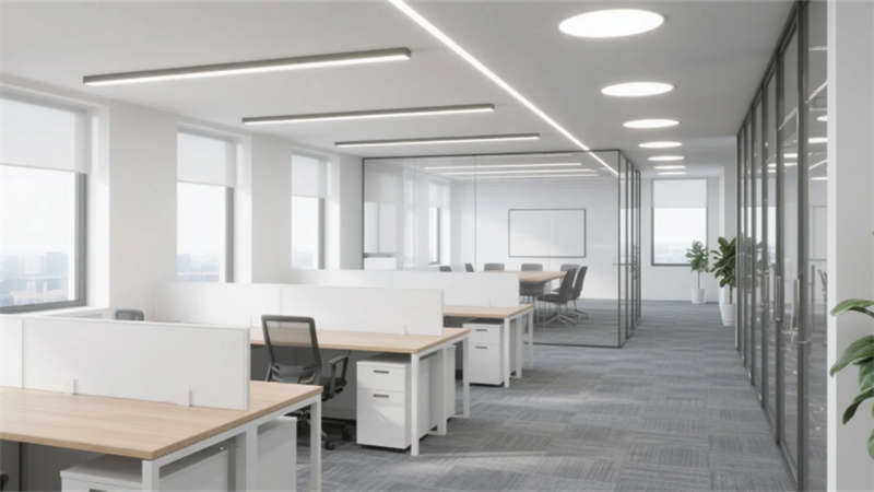 外立面采用橫向分割的玻璃幕墻與淺灰金屬框架,懸挑雨棚與隱藏式燈帶強化幾何美學(xué),夜晚呈現(xiàn)輕盈通透的視覺印象。大堂以白色石材與淺木前臺奠定簡約基調(diào),線性燈帶引導(dǎo)動線,綠植墻與玻璃隔斷休息區(qū)平衡商務(wù)與休閑氛圍。辦公區(qū)通過白色工位隔斷與淺木桌面實現(xiàn)高效布局,線性燈光與落地窗引入充沛自然光,玻璃會議室保障通透視野。
