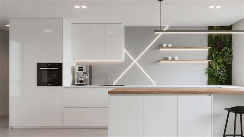 高管辦公空間彰顯差異化設(shè)計:經(jīng)理辦公室以木格柵墻面與模塊沙發(fā)營造親和力,總裁辦公室則通過深胡桃木隱形門、弧形沙發(fā)與城市景觀落地窗凸顯沉穩(wěn)氣度。多功能廳采用可伸縮隔斷與嵌入式LED屏,適應(yīng)培訓(xùn)、會議等多場景需求;茶水間以中島吧臺與幾何層板打造輕松社交空間,筒燈聚焦的綠植墻增添生機。