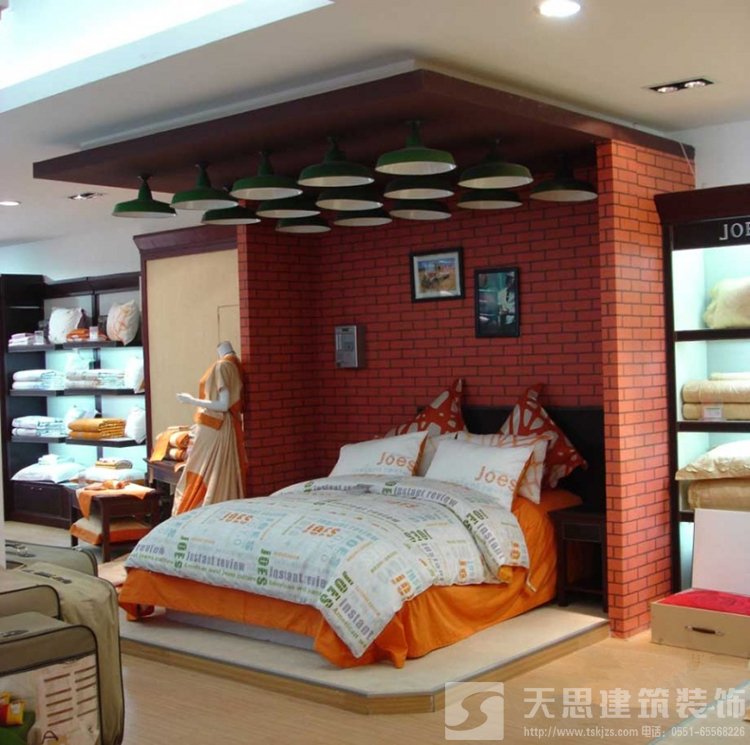 家紡店裝修通過對多種裝飾素材的精心運用不僅能使店鋪室內(nèi)設計的風格鮮明,店面的特色突出,而且還能對店內(nèi)商品起很好的烘托作用。現(xiàn)在的家紡店裝修應該要選擇簡歐帶點現(xiàn)代的風格,這樣比較能過吸引顧客。室內(nèi)設計應設計的溫馨,大氣 ,浪漫,這樣才會有很大的客戶量。