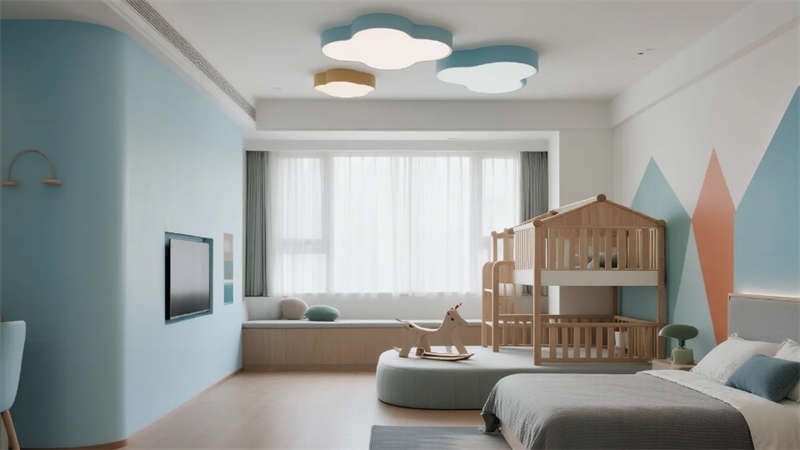 這座親子民宿以現(xiàn)代簡(jiǎn)約美學(xué)為靈魂,將自然元素與童趣設(shè)計(jì)無(wú)縫銜接??臻g摒棄繁復(fù)裝飾,選用淺木、純白與低飽和色彩鋪陳,弧形線條與柔和光影交織,營(yíng)造出寧?kù)o而溫暖的氛圍。從大堂的嵌入式動(dòng)物燈箱到套房的樹(shù)屋床鋪,每一處細(xì)節(jié)都暗藏親子互動(dòng)巧思,安全圓角家具與軟包地臺(tái)呵護(hù)孩童探索的每一步。