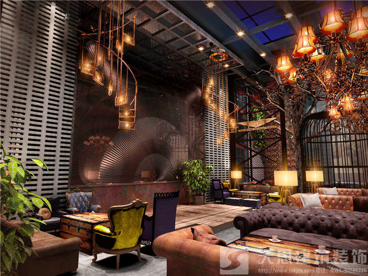 逆向思維的設計方式可見一斑,元素多為金屬鋼鐵、老榆木、清水混凝土等自然普通材質。當這些材質與彩色燈帶彼此碰撞,律動感瞬間迸發(fā)而出,同時他巧妙運用反襯和撞色技巧塑造了空間,并未刻意用常規(guī)的大面積燈光來營造絢麗空間,反而有意料之外的驚喜。鏤空隔斷打造開放式格局,讓每一位顧客感受到流暢開闊的空間構造,敞開心扉放肆的在I FINE酒咖尋找自我。