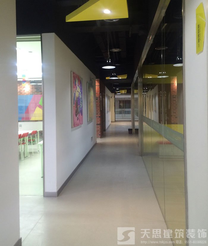 以下圖片,節(jié)選自待完工的工地現(xiàn)場(chǎng),分別是入口、大廳、過(guò)道、教室、活動(dòng)中心等功能區(qū)域。整體選擇LOFT混搭風(fēng)格,裸露的天花板+墻面,搭配現(xiàn)代元素,既節(jié)省了裝修成本,也營(yíng)造了“藝術(shù)人生”的環(huán)境。