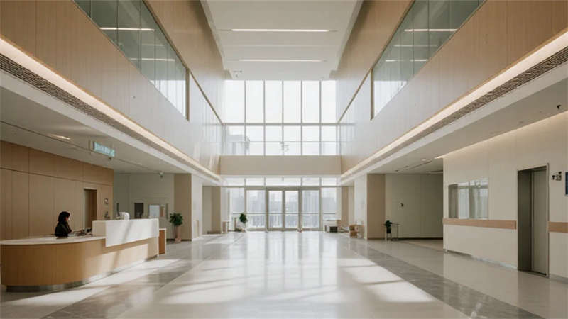 本設(shè)計(jì)將現(xiàn)代簡(jiǎn)約美學(xué)注入醫(yī)療空間,打造兼具人文關(guān)懷與高效功能的療愈環(huán)境。通透的玻璃幕墻引入充沛自然光線(xiàn),淺木紋與灰白色基調(diào)營(yíng)造寧?kù)o氛圍,綠植元素的有機(jī)融入模糊了建筑與自然的邊界。