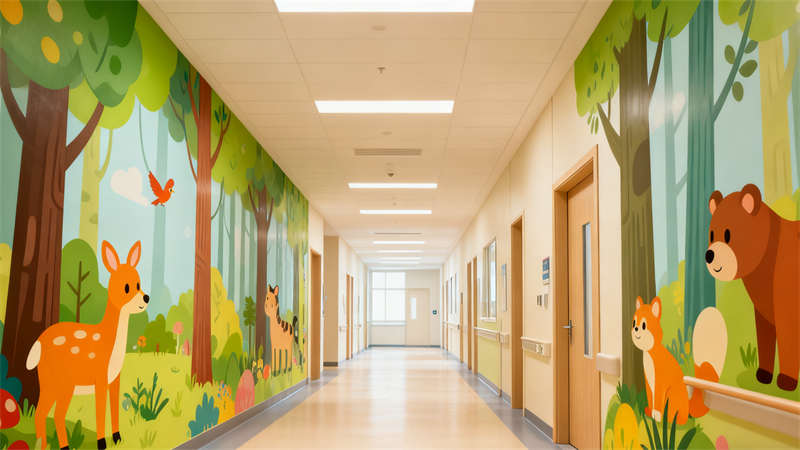 住院區(qū)域的裝修兼顧溫馨感與功能性,病房內(nèi)布置溫馨的床品與收納空間,同時預(yù)留足夠的活動區(qū)域,方便孩子在室內(nèi)活動。走廊兩側(cè)墻面設(shè)置趣味互動裝置與科普小知識展示區(qū),讓孩子在行走過程中能獲得樂趣與知識。游樂區(qū)裝修則以安全為首要原則,地面采用防滑材質(zhì),游樂設(shè)施經(jīng)過特殊處理,確保孩子在玩耍時的安全,同時通過豐富的色彩與造型,為孩子打造專屬的歡樂空間。整體裝修設(shè)計將醫(yī)療功能與兒童友好理念深度融合,為合肥這座城市的孩子們打造出一個充滿關(guān)愛與溫暖的就醫(yī)環(huán)境。?