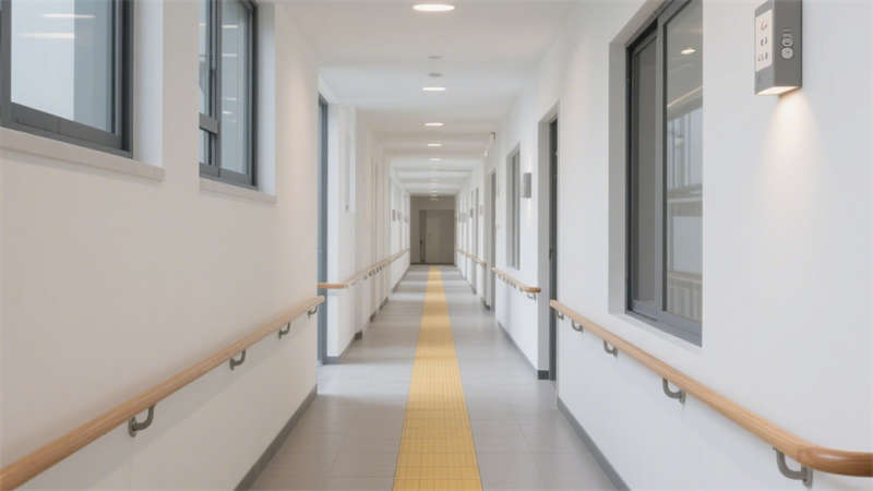 本設計聚焦養(yǎng)老院室內空間的適老化需求與現(xiàn)代審美融合,從居住者的實際生活場景出發(fā),打造兼具安全性與舒適度的環(huán)境。在公共活動區(qū)域,采用無高差地面設計,搭配防滑耐磨的地面材質,避免老人行走時發(fā)生磕碰或滑倒;墻面安裝便于抓握的扶手,扶手高度與間距經過精心考量,貼合老人起身、行走時的支撐需求,同時扶手外觀融入現(xiàn)代簡約線條,不顯突兀。?